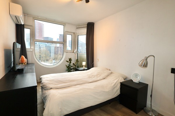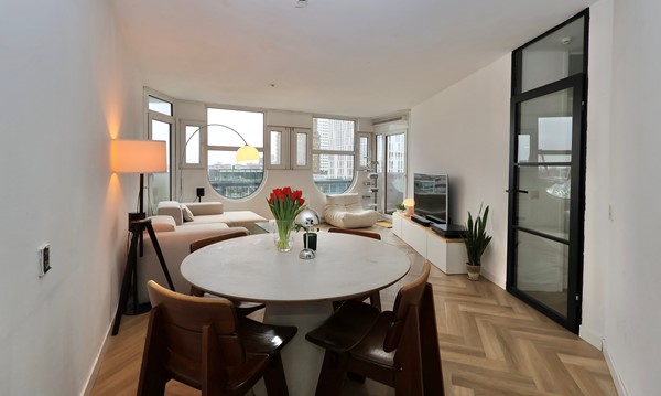 This beautifully furnished apartment is located on the 8th floor and offers unobstructed views over the city. From this prime location, you are surrounded by the iconic landmarks of Rotterdam.