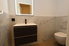 This floor features the spacious living room, filled with natural light thanks to large windows at both the front and rear of the property. The modern open kitchen is fully equipped with a dishwasher, oven, induction cooktop, refrigerator, and freezer. There is also a separate toilet with washbasin. At the rear, you’ll find a west-facing terrace of approximately 6 m².