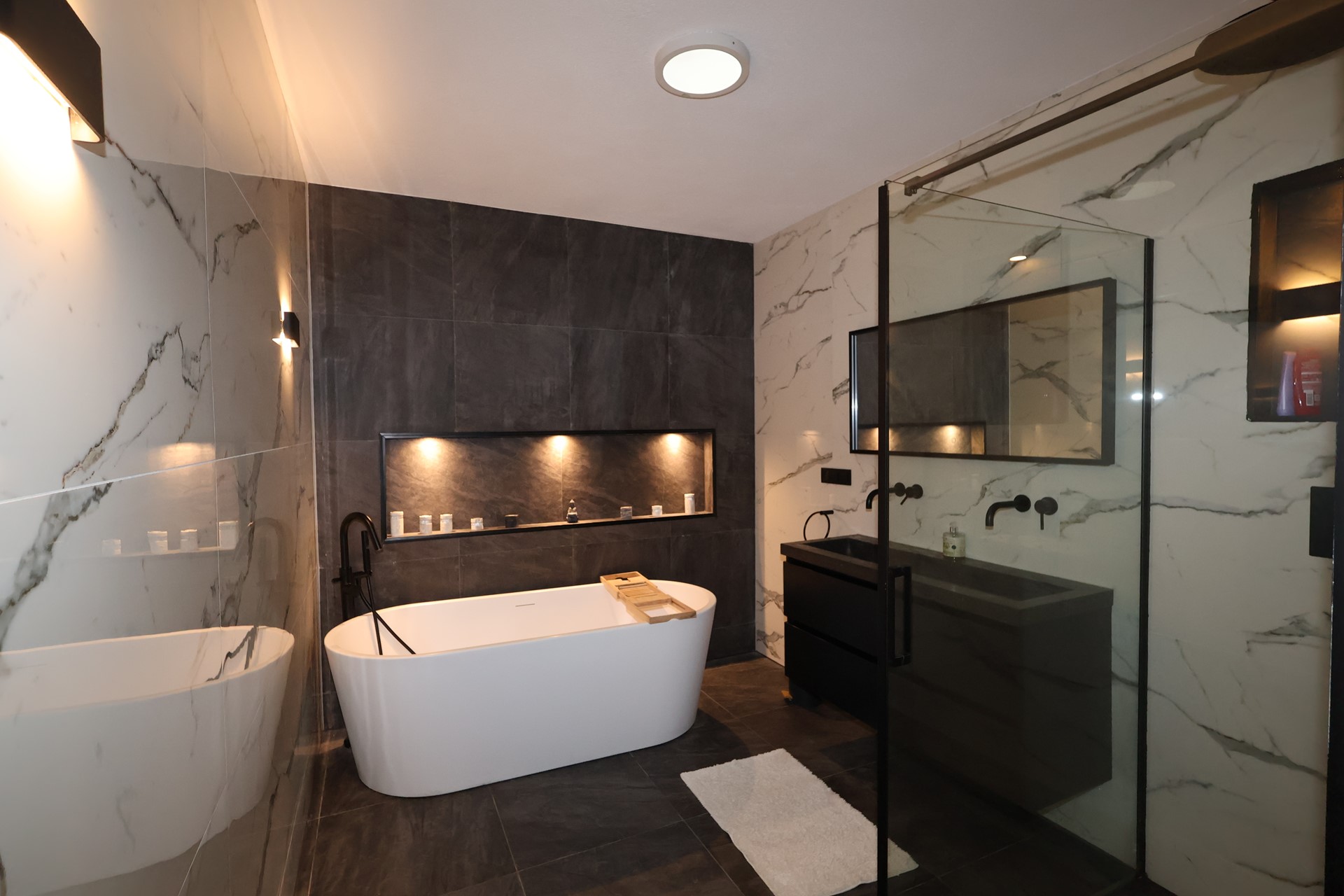 Bathroom facilities Bath, Sink, Underfloorheating, Walkin shower