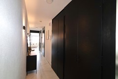 15th floorEntrance, spacious hallway with utility meter cabinet, practical storage room with washing machine and dryer connections, and a separate toilet with small sink.