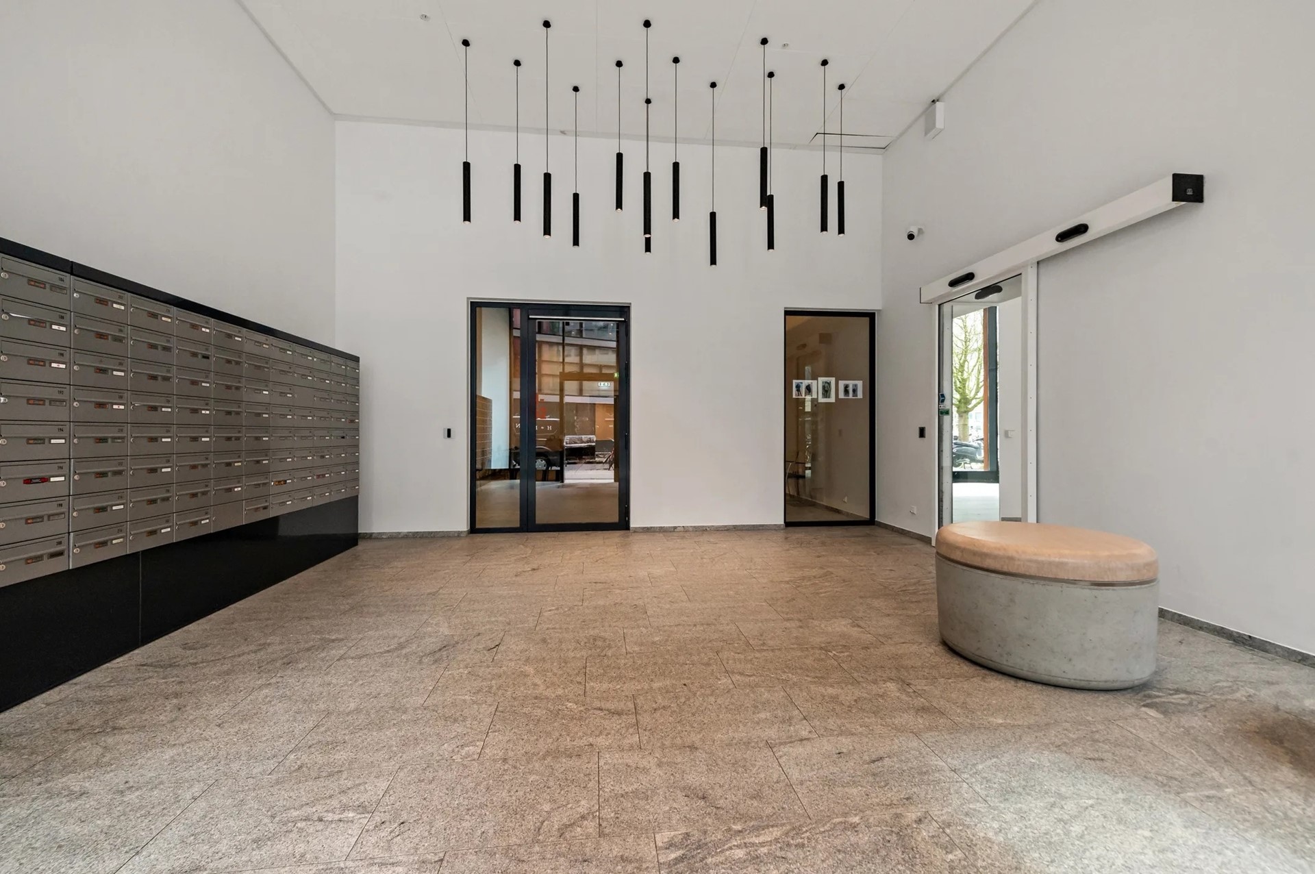 Well-maintained and representative entrance with mailboxes, video intercom system, access to the elevators, and a secure bicycle storage area.